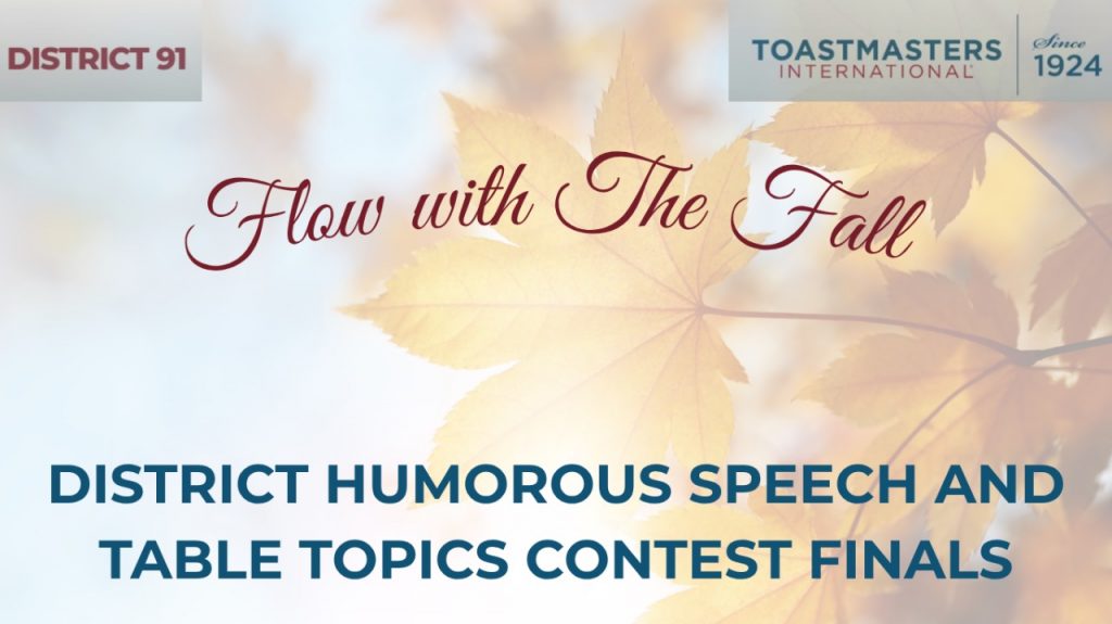 Celebrate the best of District 91 as our finalists take the stage in the Humorous Speech Contest and Table Topics Contest Finals.